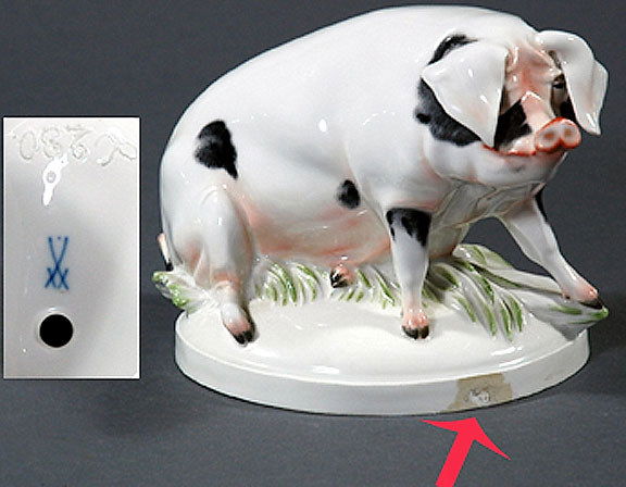 Sold19th Century Meissen FigurineProduced during the second half of the 19th century with a single factory slash mark through the blades and incised P149 for the model. No restoration shown under blacklight. Very small chip to the moSee Sold Price