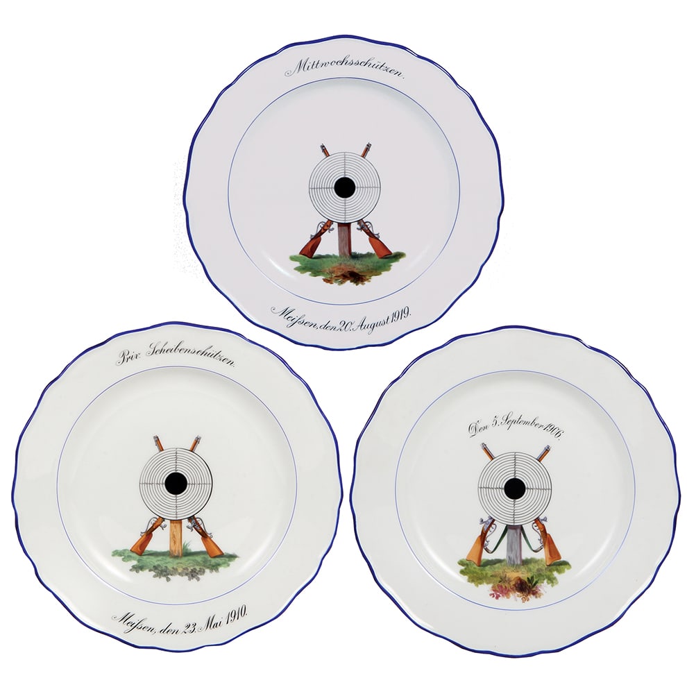 Meissen plates (three), shooting festivals