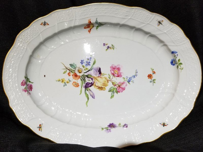 Rosenthal, Germany. "Sanssouci", cream colored serving dish decorated with flowers and goldRoyal Copenhagen, four Saxon Flower dinner plates. Hand-painted with different polychrome flowerBing & Grondahl, Saxon Flower. Large hand-painted porcelain serving dish decorated with flowers andMeissen, Germany, three plates hand painted with flowers and goldBing & Grøndahl, large round serving platter in porcelain decorated with polychrome flowers andBing & Grøndahl, Saxon Flower, large oval serving platter. Hand-painated.Bing & Grøndahl, large round serving platter in porcelain decorated with polychrome flowers andMeissen, Germany. Large fish platter, hand painted with flowers and insects and gold rim.Bing & Grøndahl, large oval serving platter hand-painted with polychrome flower motifs and goldA Meissen deep plate, circa 1745Vintage Lenox Porcelain Butterfly Meadow PlateFeb 17, 2026Meissen Germany, Porcelain Serving Platters, PairFeb 23, 2026Vintage Lenox Porcelain Butterfly Meadow PlateFeb 17, 2026Lowestoft Oval Platter c18-19th century Handpainted design Bianco Sopra BiancoFeb 22, 2026A Meissen Hand Painted Serving Plate2 days LeftMeissen cobalt plateMar 01, 2026