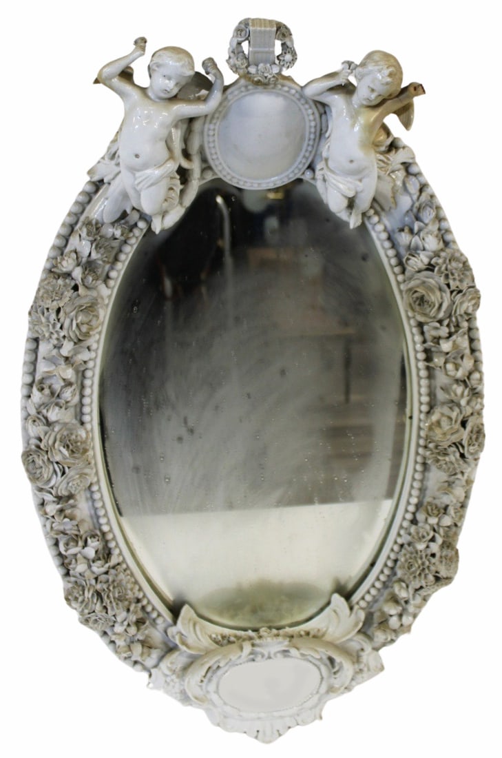 Antique Meissen porcelain mirror with original glass. Decorated with angels and repousse flowers.German Porcelain Cherub MirrorMar 14, 202619th Century Meissen Porcelain Hand Painted Ormolu Mirror2 days LeftSitzendorf Porcelain Mirror with Candle HoldersMar 14, 202619TH C. FLOWER ENCRUSTED MEISSEN MIRROR4 days LeftVintage Midcentury Italian Oval Beveled Mirror with Floral Etching2 days LeftA floral giltwood Italian carved mirror6 days LeftCapodimonte mirror surmounted with Cherubs holding a garland of Blue Flowers7 days Left19th Century French Silverplated Putti Motif Mirror High Victorian Style492 Lots AwayFrench Giltwood Oval Wall Mirror, ca. 19th CenturyMar 07, 2026A VENETIAN ETCHED AND CUT CUSHION FRAMED WALL MIRROR, LATE 19TH OR EARLY 20TH CENTURYLarge 16" Art Nouveau Gilt Bronze Cherub Beveled Mirror1 day Left19th Century Louis XVI Style Carved & Giltwood Beveled MirrorMar 15, 2026Victorian Carved Giltwood Oval Mirror1 day LeftA baroque-style carved silvered and giltwood mirror, late 19th/early 20th century, Italian,Mar 18, 202619th C Italian Rococo Giltwood Mirror2 days Left