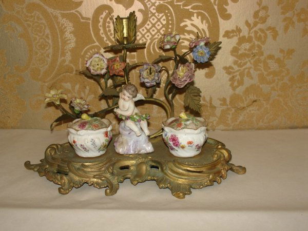 Meissen Type Inkstand W/ormolu Mounts, Single Can
