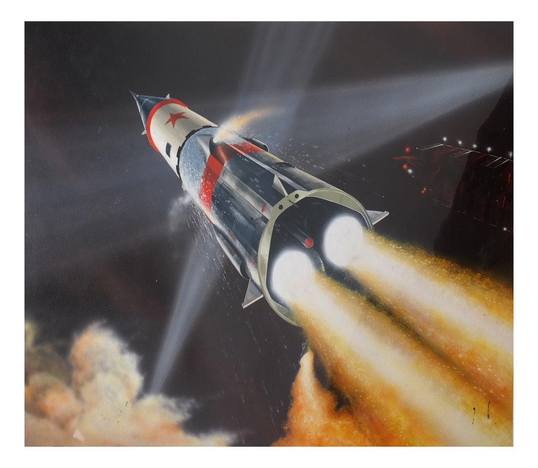RUSSIAN SOVIET PROPAGANDA POSTER 19833 days LeftBruce Weinstock (PA,20C) gouache paintingMar 15, 2026Vintage mid 20C American oil paintingFeb 22, 2026John Batchelor (UK,1936-2019) ink paintingMar 22, 2026Reggie Stanton (US,20/21C) gouache paintingApr 26, 2026Newell and Sorrell (UK,20C) gouache paintingApr 26, 2026Wayne La Com (TWA Airplane - Lockheed Model 049) Signed Original Watercolor3 days LeftAnna Volkova (Ukraine,20/21C) pastel paintingApr 05, 2026Original Apollo 17 Night Launch -RCA- Photograph3 days LeftErnst Stuhlinger – NASA Rocket Scientist – Autographed 8 × 10 PhotographEberhard Rees – NASA Marshall Space Flight Center Director – Autographed 8 × 10 PhoMort Kunstler Signed Limited Edition Giclee Space Shuttle Columbia PrintFeb 20, 2026Vintage Gemini GT-1 Launch Photograph3 days LeftOriginal NASA Apollo 11 Launch Photograph3 days LeftCoolRockets Buck Rogers Battle Cruiser with Original BoxFeb 25, 2026Mario Schifano 'Biplano'4 days Left