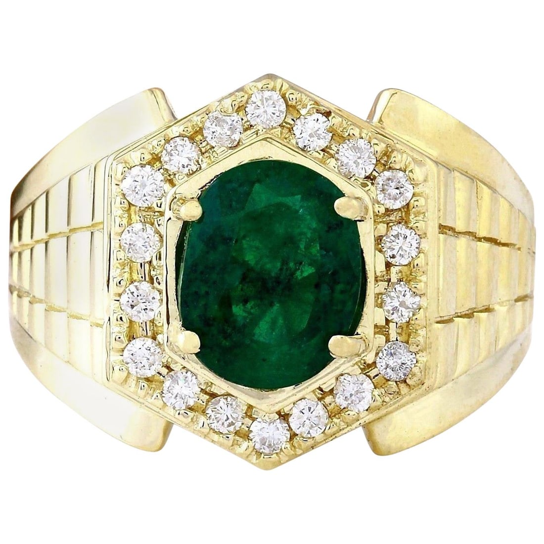 Men Emerald Diamond Ring In 18K Solid Yellow Gold