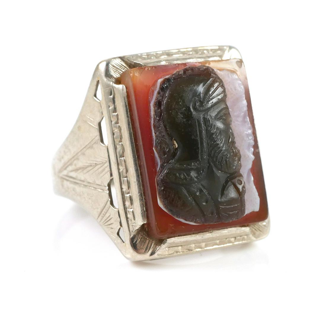 Men's 14k Ring with Agate Cameo
