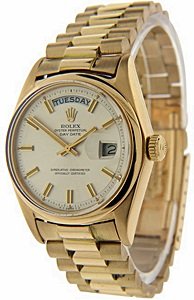 SoldRolex Yellow Gold President Day-Date AutomaticRolex President Day-Date Men's 18k Gold Watch 18038 - Automatic winding; quick-set; sapphire crystal. 18k yellow gold case with Fluted bezel (36mm diameter). Very rare and unusual Masonic Champagne diSee Sold Price