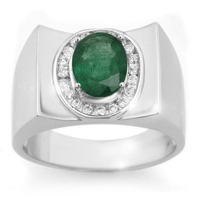 Men's 2.33ctw Diamond & Emerald Ring Solid White Gold