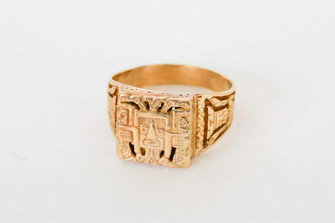 Sold14k Men's Gold Ring w Intaglio Carved Bloodstone14k Men's yellow gold ring mounted with a 13 mm x 16 mm Roman intaglio bloodstone. Size 10. Weight = 6.4 dwt.See Sold Price