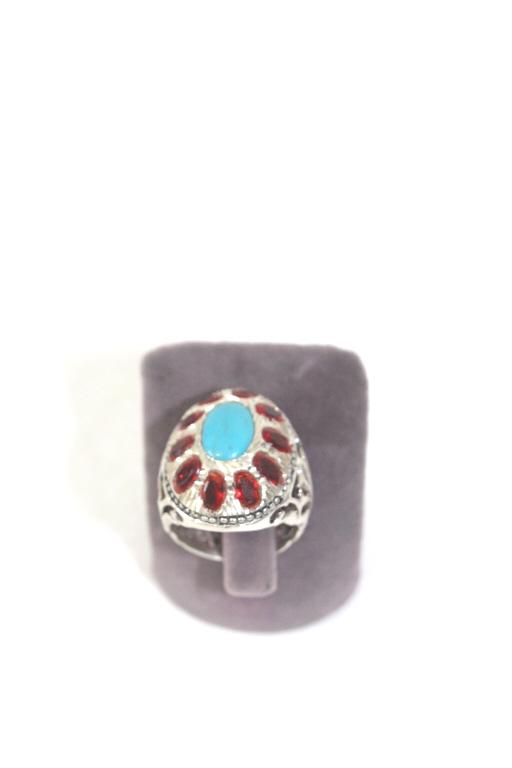 Men's silver ring with turquoise and ruby red gems Men's silver ring with turquoise and ruby red