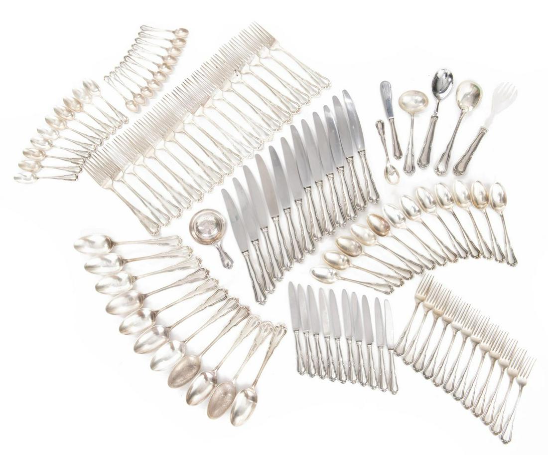 120+ Pc Lot Sterling Flatware, Rogers & GorhamFeb 21, 202665pc Silverplate Flatware and ServingMar 02, 2026OLIER & CARON - 84pc 950 STERLING SILVER FLATWARE SET MOTHER OF PEARL KNIVES - 1920sGorham Chantilly pattern sterling silver flatware partial service for 12; 49pc. 30.707ozt weighableFeb 21, 2026Durgin Fairfax pattern sterling silver flatware service for 8 plus with serving pieces; 76pc.,Feb 21, 2026Partial Gorham Regent Silverplate Flatware Set with Assorted Sterling Pieces,Lunt Monticello pattern sterling silver flatware dinner service for 8, 72pc., 47.267ozt. weighable.Feb 21, 2026ARTHUR SALM "BORDELON" AUSTRIAN FLATWARE GROUPING6 days LeftNine Georg Jensen Sterling Handled KnivesFeb 17, 2026Continental Silver Flatware Service for Six2 days LeftGroup Sixteen Assorted Silver ForksFeb 17, 2026Towle Old Master Sterling Silver Flatware2 days LeftManchester Silver Flatware Service in the 'Copenhagen' Pattern6 days LeftMisc. Sterling and Coin Silver Flatware, 55 pcs.Feb 26, 2026A canteen of assembled Gorham silverplate flatware in the Kings pattern5 days LeftTiffany Sterling Colonial Flatware Set, 69 pcs.Feb 26, 2026