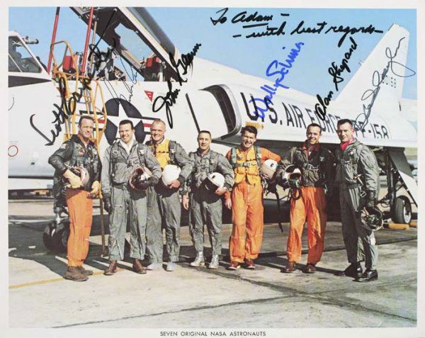 Mercury Astronauts. Color Lithograph Signed by
