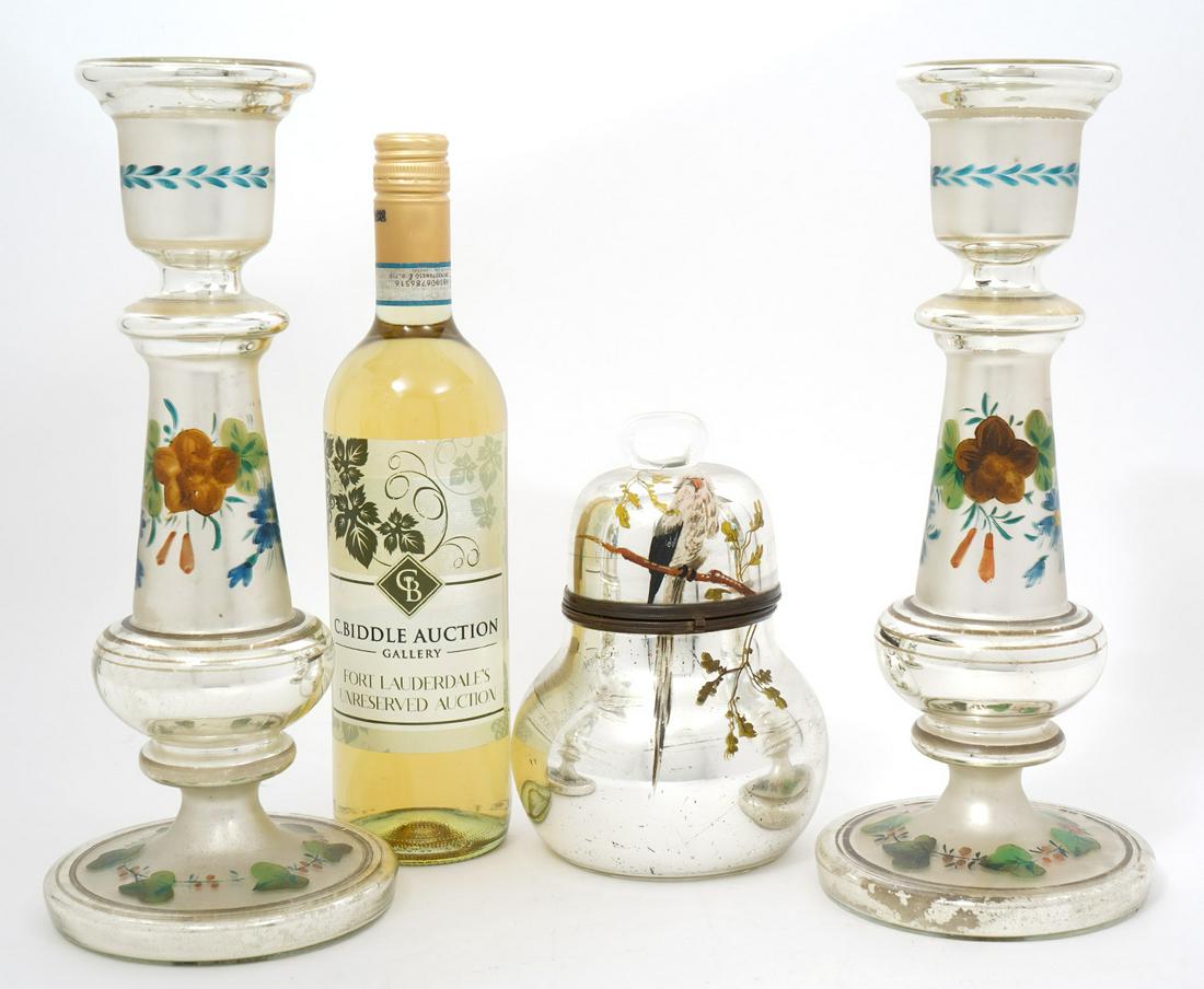 Mercury Glass Candlesticks and Hinged Box
