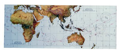 SoldApollo 16 Earth Orbit Chart in Color.This original earth orbit chart dated February 15th 1972 for the Apollo 16 mission measures 13 1/2 inches tall by 41 inches long. Depicts earth revolutions one and two, the trans lunar injection burn,See Sold Price