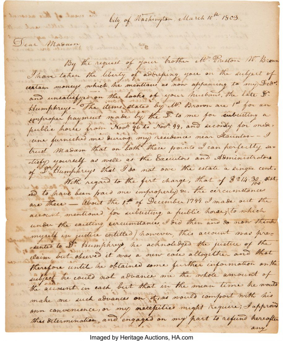 Late 18th Century Pennsylvania Colonial Land CaseMar 15, 2026WASHINGTON, George (1732-1799). Autograph letter signed twice as first President ("G: Washington")Mar 26, 2026(MILITARY--CIVIL WAR.) Letter describing the escape of a Civil War camp cook from slavery. NewportMar 19, 2026LINCOLN, Abraham (1809-1865). Manuscript legal document signed ("A. Lincoln") in the case of MaryMar 26, 2026(SLAVERY.) Letter describing a Georgia slave auction in detail. Savannah, GA, 1841Mar 19, 2026(ABOLITION.) Letter describing the fugitive abolitionist lecturer Moses Roper in England. Leeds, 2Mar 19, 20261793 Vermont Court Case Complete Legal ManuscriptMar 15, 2026(RECONSTRUCTION.) Farm labor agreement signed by formerly enslaved person. Huntsville, AL, DecemberMar 19, 2026(ABOLITION.) Letter to Andrew Jackson pleading for him to emancipate his slaves. Freehold, NY, 19Mar 19, 20261794 Signed Plymouth County, MA Land DeedMar 15, 2026(SLAVERY.) Letter about an aged enslaved woman who is "ancious to stay with her daughter." Cumming,Mar 19, 2026(RECONSTRUCTION.) Tennessee sharecropper contract. Montgomery County, TN, 15 January 1867Mar 19, 2026William Thornton 1817 Washington DC Capital Architect Signed Manuscript Document Richard Bland LeeMar 29, 2026LINCOLN, Abraham (1809-1865). Manuscript document signed twice ("A. Lincoln"), [Springfield], 5Mar 26, 2026LINCOLN, Abraham (1809-1865). Autograph legal document signed twice ("A. Lincoln" and "AbrahamMar 26, 2026(MILITARY--CIVIL WAR.) Letters by a lieutenant in the 22nd United States Colored Troops. Virginia,Mar 19, 2026