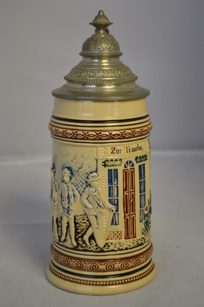 LOT OF GERMAN POTTERY, STEIN / MUG3 days LeftSmall German Beer SteinMar 17, 2026Rare Men Playing Billiards Stein w Fancy LidMar 21, 2026Regimental Husar Rhein No 7 Bonn SteinMar 21, 20261L Three Portraits Relief Stein w Fancy LidMar 21, 2026Regimental Drag No 15 Hagenau SteinMar 21, 2026METTLACH # 2276 GOOSEMAN OF NUREMBERG STEIN1 day LeftAntique c. 1900 Gertz 1816 German Stein 2L """"Tiroler Leben"""" Pouring Vessel w/ Lid (French Zone)Mettlach Stein #2286 "Drinker with the Owner of Zur Linde"6 days LeftRegimental Feld Art No 8 Saarlouis SteinMar 21, 2026Mettlach Postman Drinking from Stein Barmaid LidMar 21, 2026Rare Occupational Mettlach Miners Stein & LidMar 21, 2026Mettlach Dwarfs Drinking & Smoking SteinMar 21, 20261L Commeration Returning Warrior to Beuern SteinMar 21, 2026Regimental No 121 Ludwigsburg Gefreiter SteinMar 21, 2026Ceramic Beer Stein6 days Left