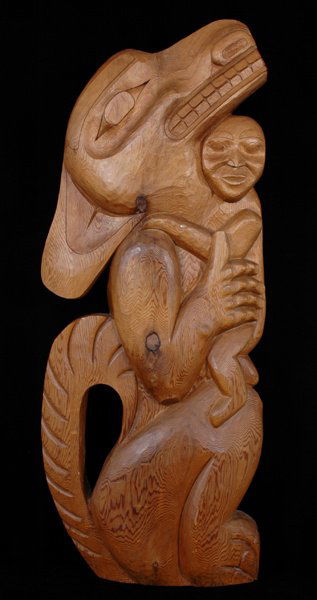 71 Merlin Robinson Cedar Panel Carved with Wolf an