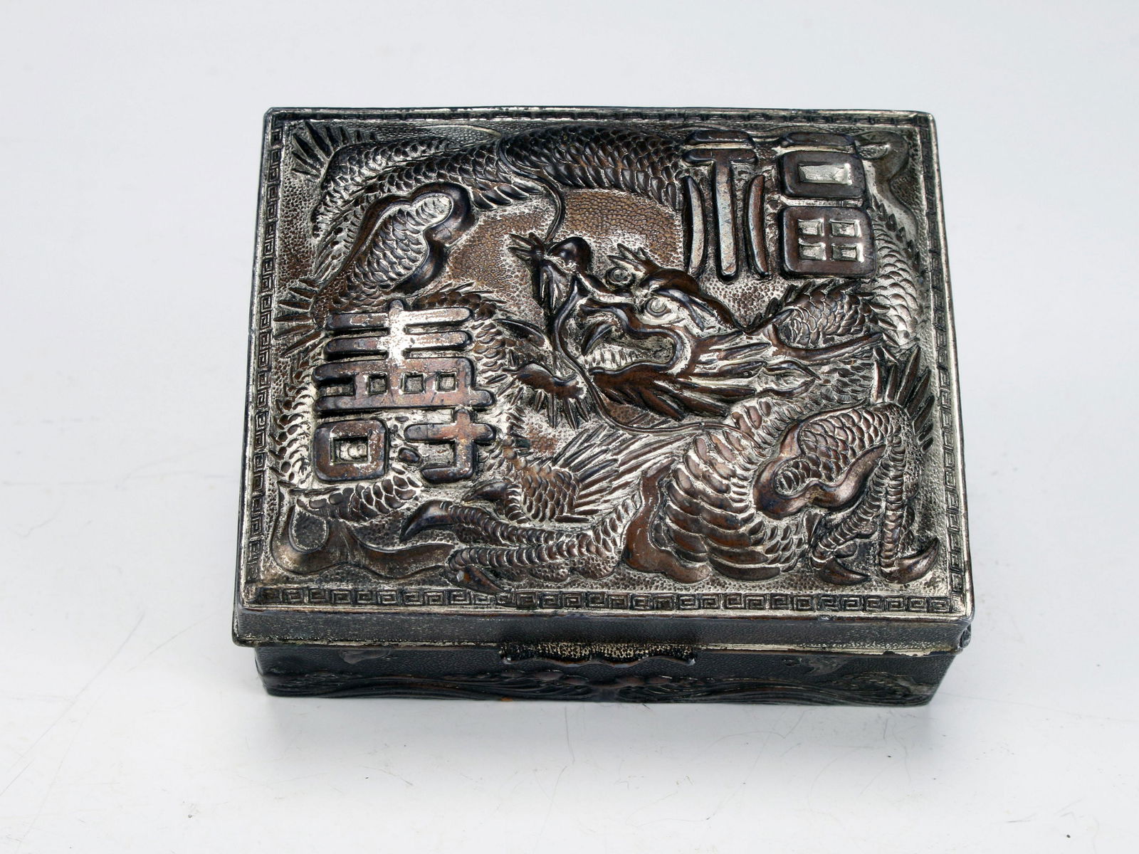 A SILVER 'DRAGON' BOX AND COVER, CHINA, LATE QING DYNASTYMar 11, 2026Silver - gilt Box with Chiseled Dragon PatternsMar 08, 2026Chinese Export Silver 'Dragon' Box and Cover,Mar 14, 2026Collector's edition rosewood storage box with carved dragon and auspicious symbols, top lid,16 hrs LeftAntique SP Engraved with Dragons Hinged BoxMar 08, 2026A POLYCHROME LACQUER LIDDED BOX DECORATED WITH SEA AND DRAGON MOTIFS4 days LeftAn Exquisite Zitanwood Dragon Pattern Cover BoxMar 11, 2026A LACQUER BOX WITH GILT-DECORATED DRAGON MOTIFMar 28, 2026An Exquisite Gilt Bronze Dragon Pattern BoxMar 13, 2026A Exquisite Zitanwood Dragon Pattern with poem BoxMar 30, 2026A FINE CARVED CINNABAR LACQUER DRAGON BOX WITH COVERMar 22, 2026A Ming Dynasty copper gilt relief dragon pattern eight treasure lid boxMar 21, 2026A Exquisite Zitanwood Dragon Pattern BoxMar 24, 2026A Exquisite Zitanwood Dragon Pattern BoxMar 18, 2026Vintage Brass Toned Embossed Lidded Trinket Box3 days LeftAn Exquisite Zitanwood Dragon Pattern Cover Box6 days Left