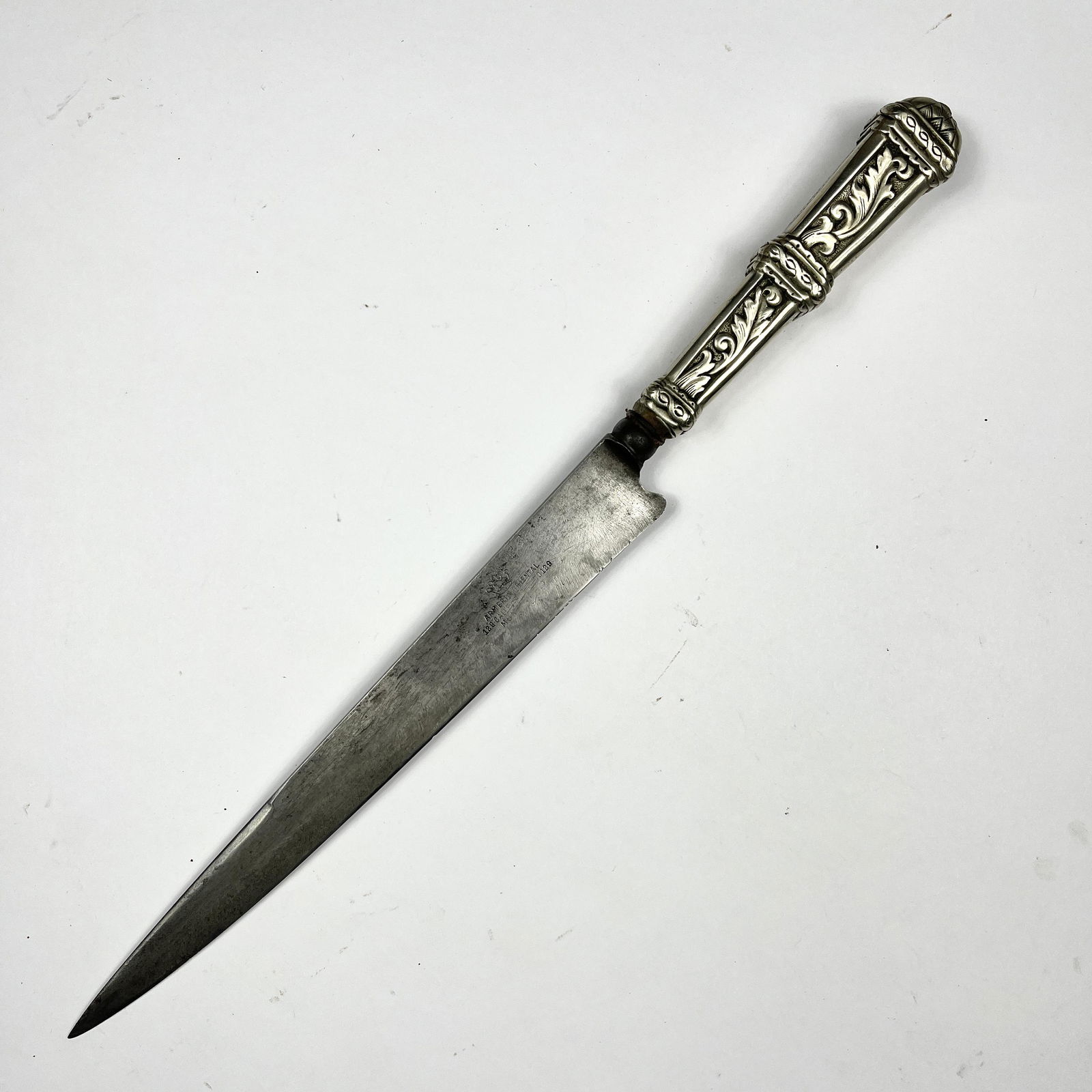 Good Antique Asian Indonesian PEDANG Sword Dagger with Dramatic Damascus Steel Blade Carved withMar 14, 2026Luristan Bronze DaggerMar 05, 2026Gorham Hizen Sterling Silver Game Knife with Stag Design 8 1/4"368 Lots AwayInteresting Vintage American BOWIE KNIFE Self Defender MOP GripMar 28, 2026Antler Handle Switchblade Knife marked Rostfrei 5" Blade 11" Total length. Beautiful Knife in great3 days LeftGorham Mythologique Sterling Silver Hollow Handle Steak Knife 9 3/4"4 days LeftSeldom Encountered American Civil War Era BOOT BOWIE KNIFE by Rodgers SheffieldMar 28, 2026African Kuba DRC Aluminum Short Sword “Ikul".4 days LeftM. HUNTER & SON BOWIE-STYLE KNIFE England, 19th Century Length 11".Mar 05, 2026A fine copper sword with gold and silverMar 14, 2026Damascus Steel Dagger and Leather ScabbardApr 14, 2026Lavishly Ornate Late 19th C. Argentine FACON CRIOLLO Knife Engraved Silver & ScabbardMar 28, 2026Massive 19th C. Afghan KHYBER KNIFE Polished Hardwood HiltMar 28, 2026Museum grade 19th C.Silver Indian Sossun Pata sword made for a boyMar 28, 2026AN ITALIAN THRUSTING-SWORD FOR USE AGAINST PLATE-ARMOR Last quarter 15th century.Mar 14, 202628" Damascus Blade 2 Handed Short Sword1 day Left