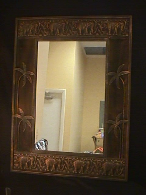 METAL ELEPHANT PALM TREE FRAMED MIRROR