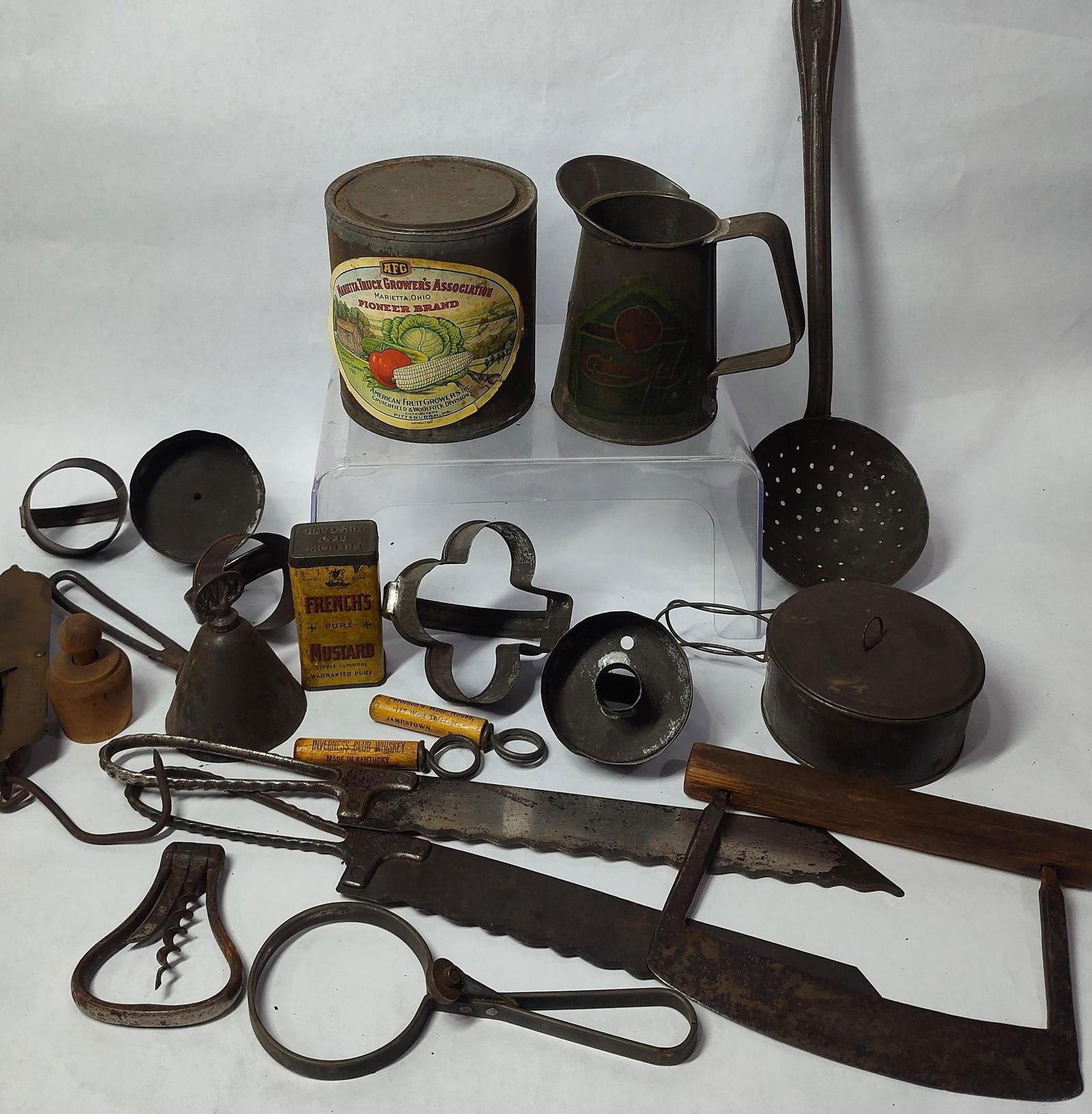 Great Ebayer or Collectors LotMar 28, 2026Vintage Kitchen Untensil Lot (10 pcs)11 hrs LeftLOT OF VINTAGE KITCHENWAREMar 22, 2026LOT OF ANTIQUE TIN KITCHENWAREMar 22, 2026LOT OF ANTIQUE TIN KITCHENWAREMar 22, 2026LOT OF TINWARE AND NUTMEG GRATERSMar 22, 2026GROUP OF AMERICAN TIN KITCHENWARE. Largest. 3.25''h. 7.5w. 5°d.Mar 19, 2026Early and Antique Kitchen Utensils, Wood and MetalMar 20, 2026COLLECTION OF AMERICAN FORGED IRON.Mar 20, 2026Antique Kitchen Tools - Stoner, Cherry Pitter, Sca2 days LeftVintage Brass Fruit Bowl, Wind Chime, Bank & More5 Wrought Iron Implements & Cooking Utensils13 hrs LeftFive primitive wrought iron tools and utensils, 19th C., all with no markings, including: triangularMar 16, 2026