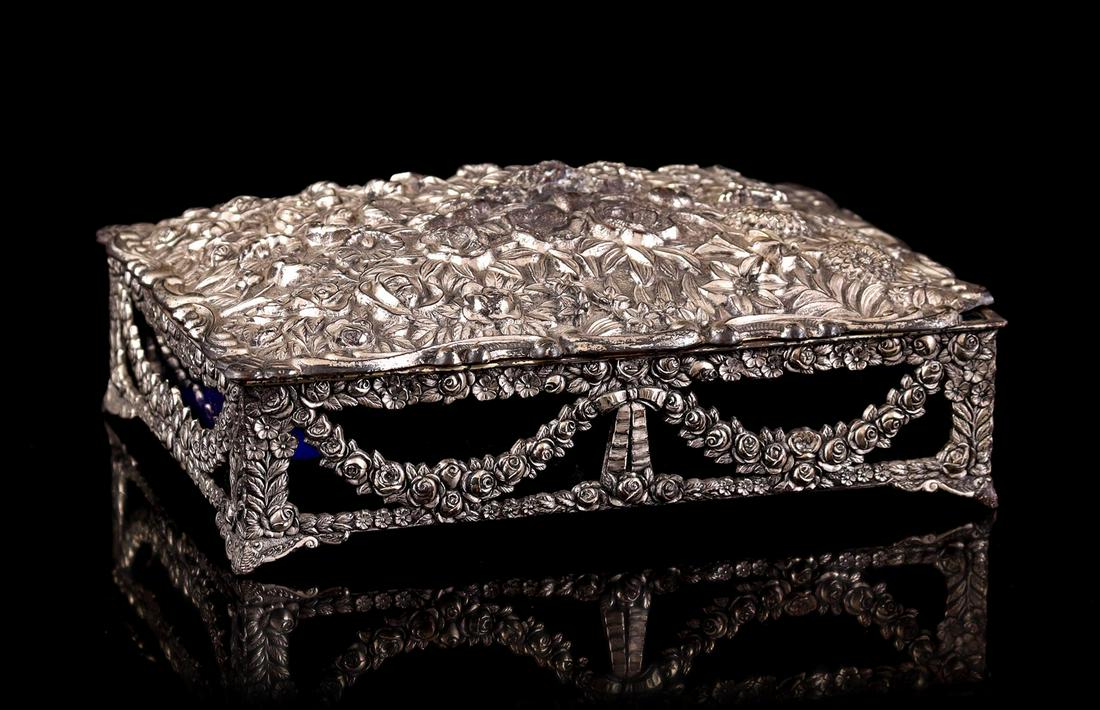 Vintage Silver Plate Jewelry BoxMar 10, 2026A LATE 19TH CENTURY JAPANESE MEIJI PERIOD SILVER BOX AND COVER engraved with flowers. 70 grams. 8.58 hrs LeftTHAI REPOUSSÉ STERLING SILVER HUMIDOR BOX 685 GRAMSFeb 09, 2026A VICTORIAN SILVER BOX. Birmingham 1899. 88 grams. 12.5 cm long.2 days LeftA Vintage Godinger Silverplate Floral Jewelry Box with Velvet Interior2 days LeftTibetan Repousse Silver Covered Box14 hrs LeftGeorge V Silver Trinket Box, Mark of George Nathan and Ridley Hayes3 days LeftAn Antique Sterling Silver Jewelry Box3 days LeftRangoon circa 1910 An early 20th century Burmese silver cigarette or cigar boxFeb 18, 2026Large 19th Century French Figural Silver Plated Jewelry Box4 days LeftVintage TOWLE Silver Plated Jewelry BoxFeb 18, 2026Large French Jewelled Enamel and Bronze Jewelry Box,4 days LeftLarge Antique Chinese Silver & Gilt Covered Box with Insert, Qing DynastyFeb 17, 202618th C. Gilt 800 Silver Austrian Box4 days LeftVictorian 800 Silver Gold Handmade Box Austria 19th CenturyFeb 27, 2026Judaica Sterling Silver BoxFeb 18, 2026