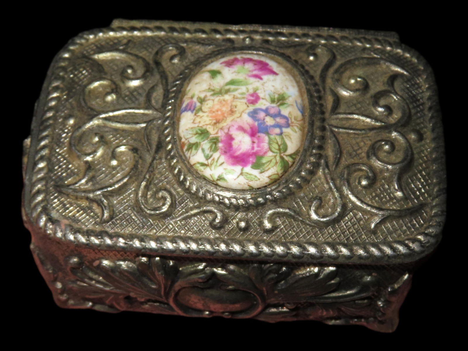 Vintage Metal and Porcelain Trinket Box