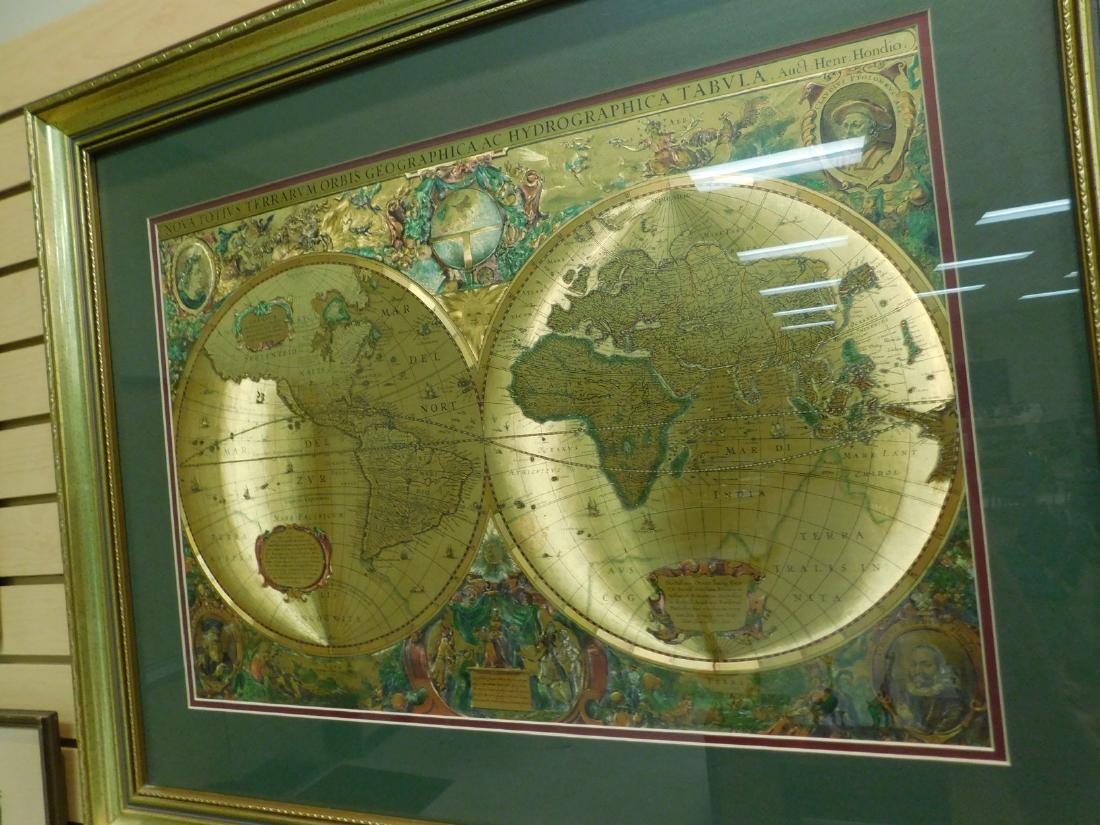 METALLIC FRAMED ORNATE GEOGRAPHIC MAP