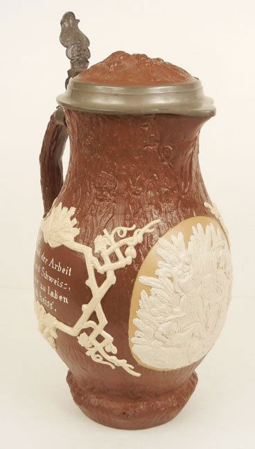 Villeroy & Boch 4 Panels Mettlach 815 Beer SteinWhites Of Utica Antique Salt Glaze PitcherRael Gleitsman Earthenware Vessel, 20th CenturyMar 14, 2026A Muskau pewter-mounted stoneware jug (Birnkrug), circa 1670GERMAN FRECHEN STONEWARE JUG WITH SILVER MOUNTS3 days LeftAmerican Stoneware Pitcher With Applied Fruit DecorationMar 15, 2026Antique c. 1900 Gertz 1816 German Stein 2L """"Tiroler Leben"""" Pouring Vessel w/ Lid (French Zone)1L Three Portraits Relief Stein w Fancy LidMar 21, 2026Vintage Ceramic Floral PitcherMar 25, 2026Mettlach Dwarfs w Drinking Horn & Mandolin SteinMar 21, 2026Vintage Stoneware Mini PitcherMar 23, 2026Rare Men Playing Billiards Stein w Fancy LidMar 21, 2026LEOPOLD ANZENGRUBER Jug decorated with horizontal reliefs, Anzengruber manufacture, Austria.2 days LeftANTIQUE EUROPEAN CERAMIC JUG W HUNTING SCENESMar 14, 2026ANTONIO GORDINI (1900-1976) & DOMENICO MATTEUCCI (1914-1991) Vase with relief decorations featuring2 days LeftANTIQUE COPPER EWER PITCHER ENGRAVED FIGURAL 13"6 days Left