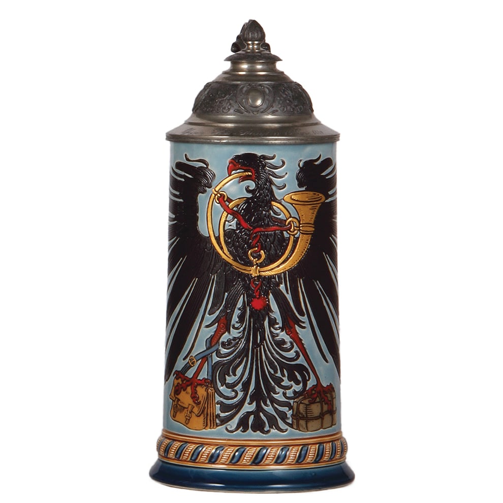 Mettlach stein, 1.0L, 1856, Postman stein