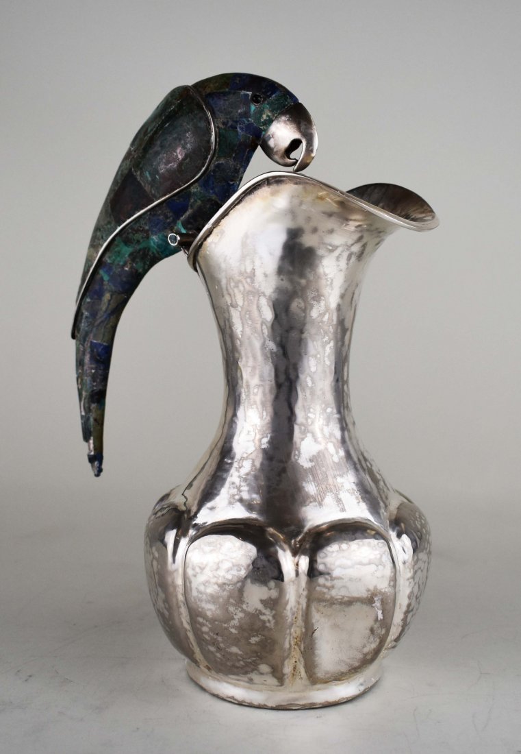 MEXICAN HARD STONE MOUNTED SILVER PLATE PITCHER