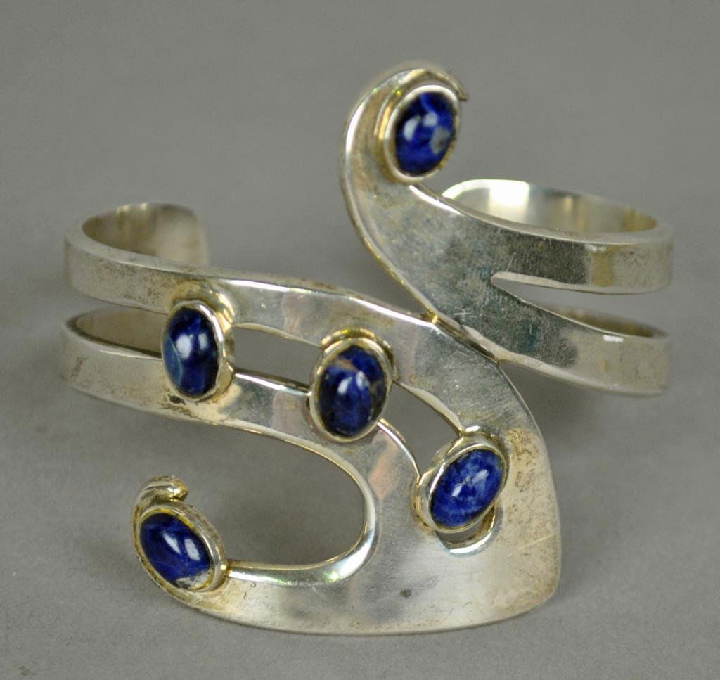 MEXICAN STERLING AND LAPIS CUFF BRACELET