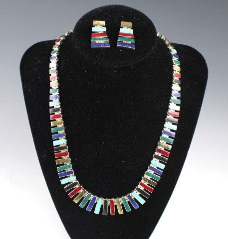 MEXICAN STERLING MULTI-STONE NECKLACE WITH EARRING