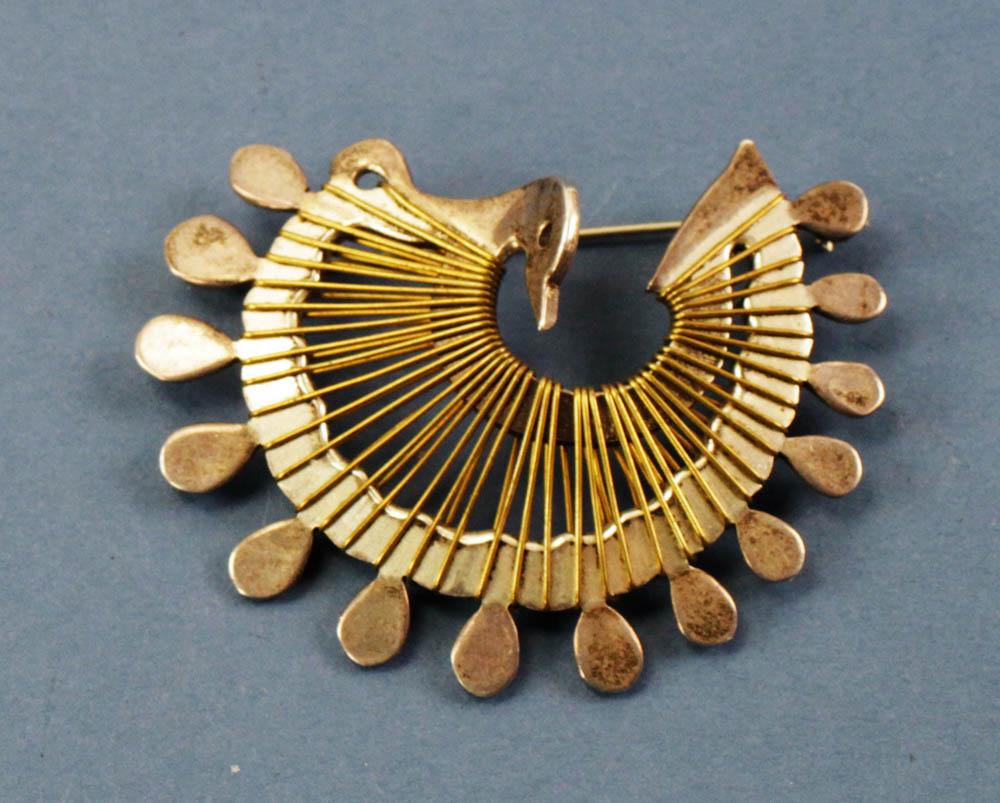 Mexican Sterling Pin, Peacock Design