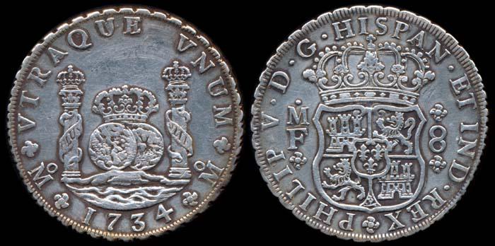 Mexico 8 Reales 1734 MF