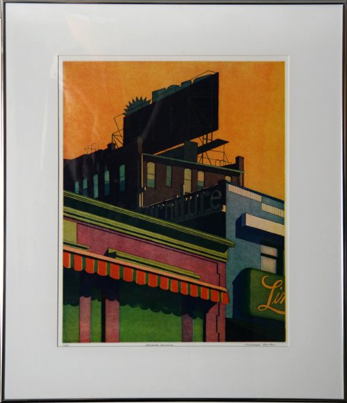 Michael Arike, Striped Awning, Aquatint Etching