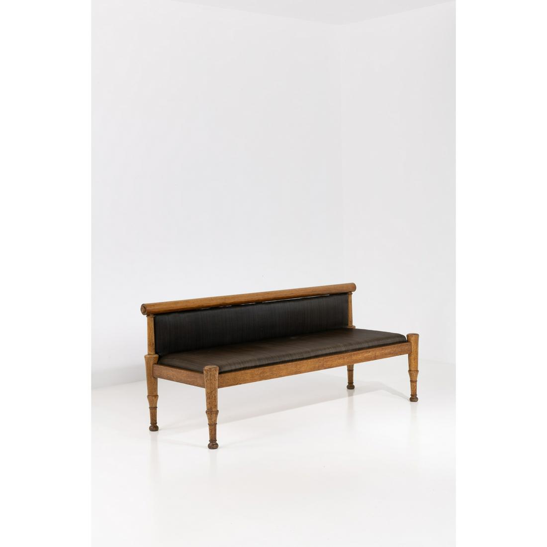 Mid-Century Modern Upholstered Wood Sofa Bench with Slatted Back, Wegner & Danish Modern InspiredOrganic Modernism$2,2005 days Left
