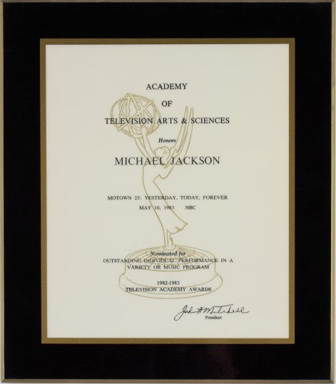 MICHAEL JACKSON EMMY NOMINATION PLAQUE