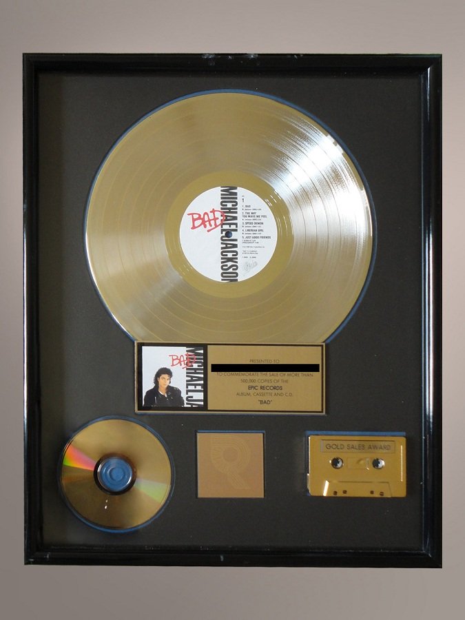 MICHAEL JACKSON RIAA BAD GOLD AWARD