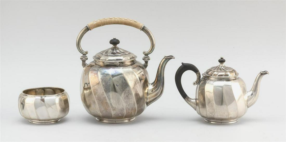 MICHELSEN .826 SILVER THREE-PIECE TEA SERVICE Includes