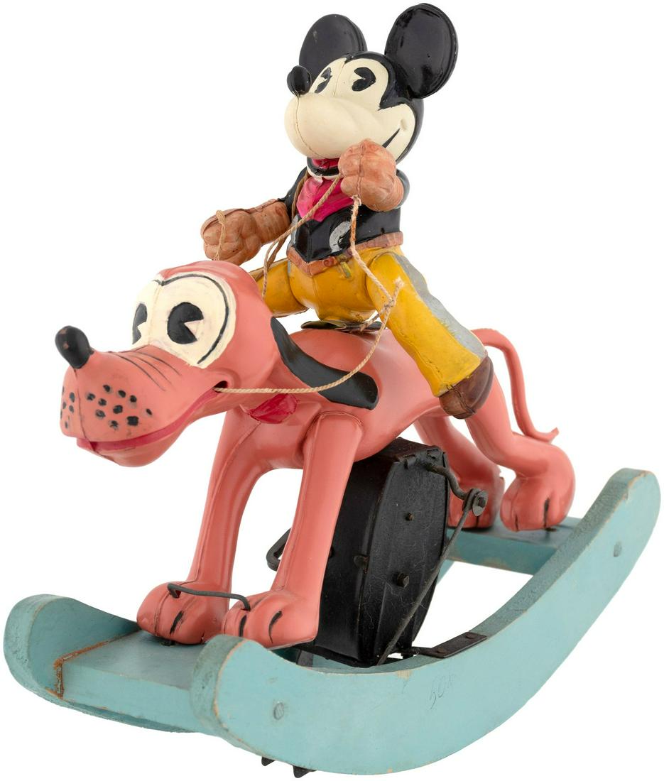 SoldLINE MAR TIN WIND UP MICKEY MOUSE PLUTO ROCKING HORSEREMAINS IN VERY GOOD CLEAN WORKING CONDITION. MICKEY'S HEAD / TORSO IS A PLASTIC REPLACEMENT.See Sold Price