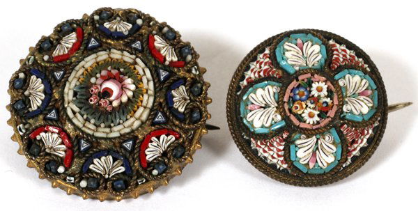 MICRO MOSAIC BROOCHES, 19TH C., TWO