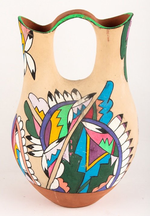 MID 20TH C POLYCHROME TESUQUE WEDDING JAR