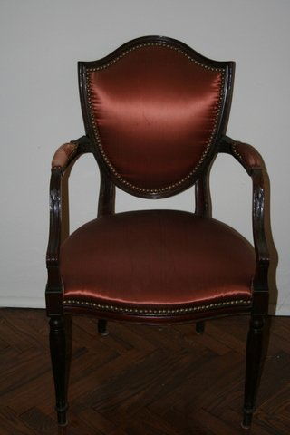 MID 20TH C. SHIELD BACK ARMCHAIR W/COPPER COLORED