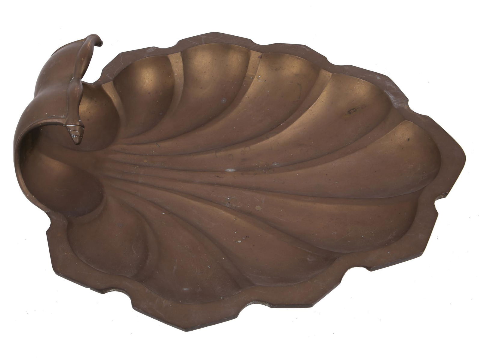 MID CENTURY BRASS FOOTED SEA SHELL FIGURAL TRAY