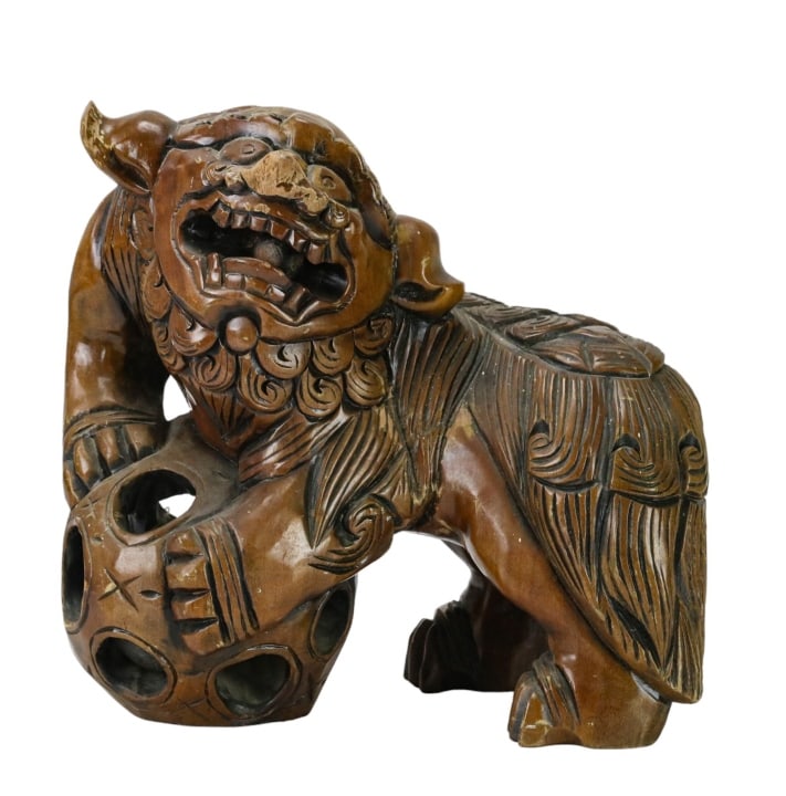 Mid Century Carved Foo Lion w Ball & Insert