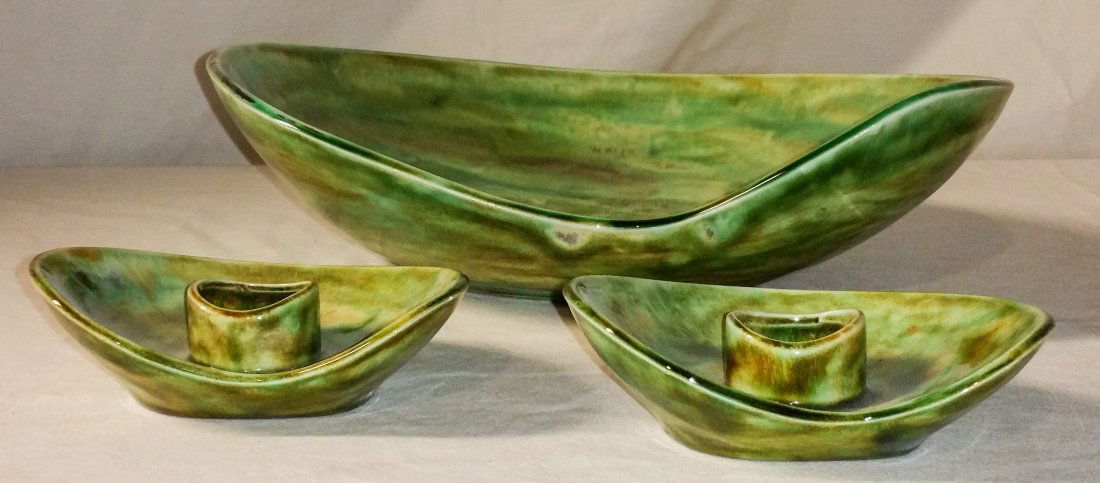 Mid Century Ceramic Bowl Candlestick Set