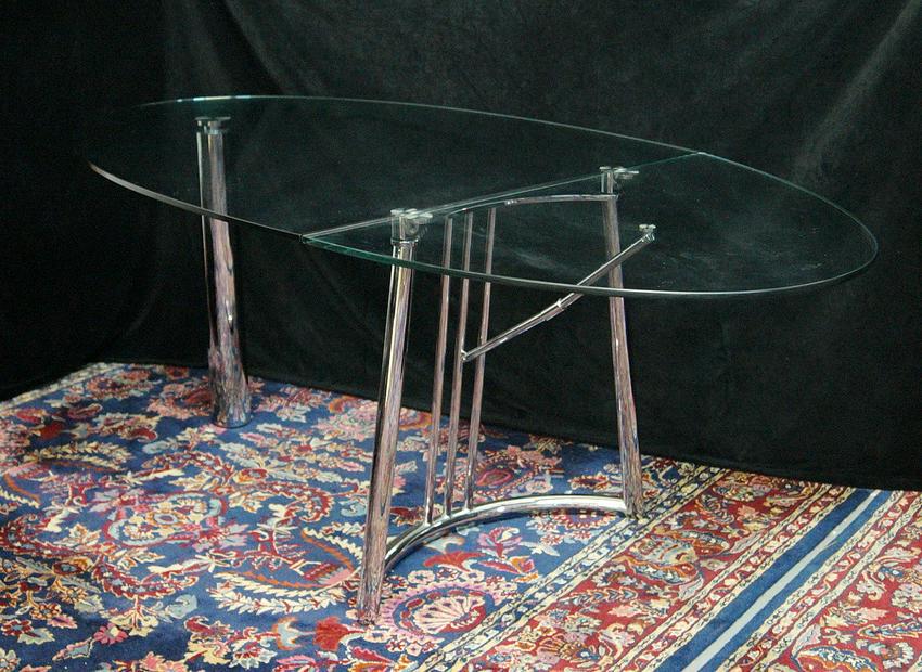 MID-CENTURY CHROME & GLASS DROP LEAF TABLE