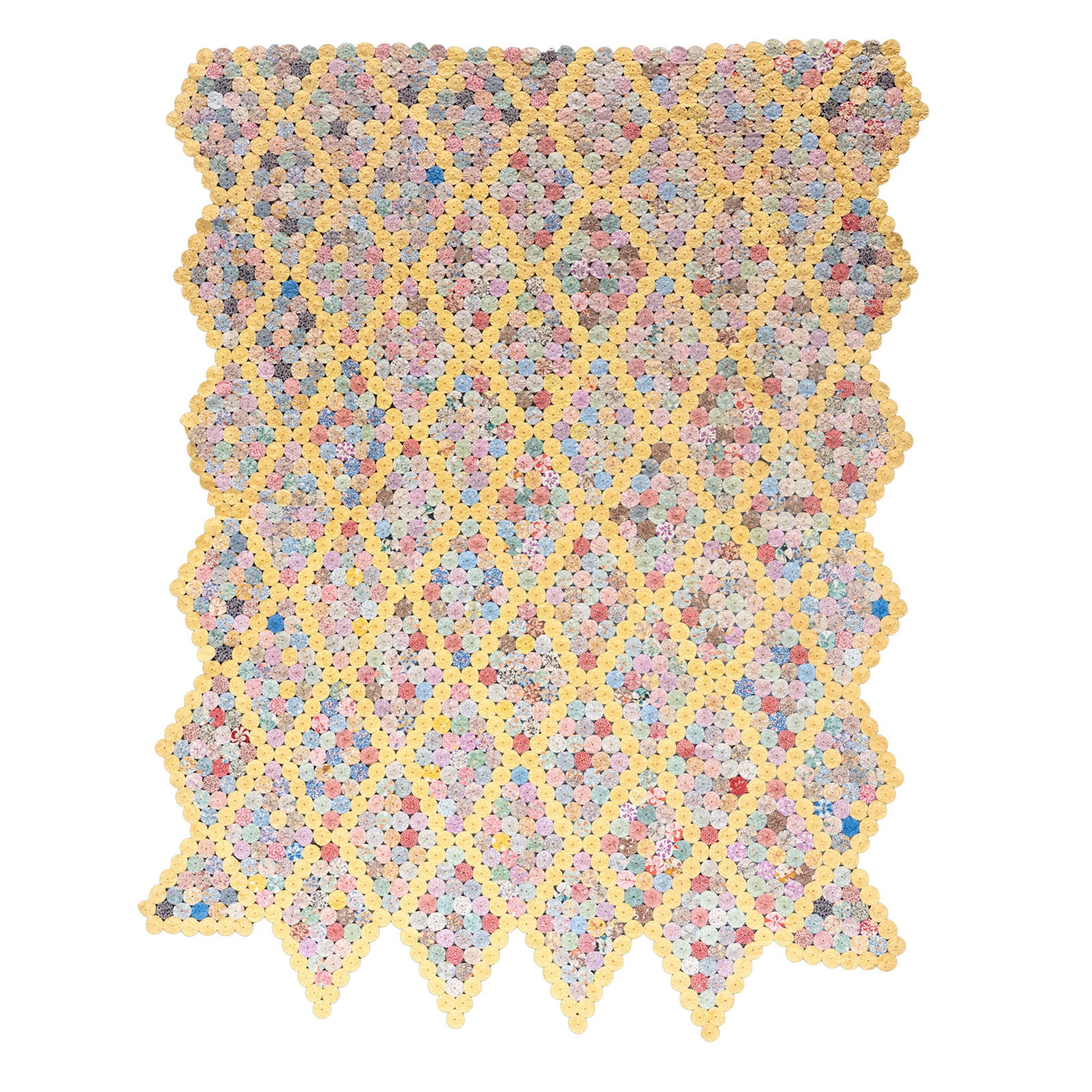 Mid-Century Diamond Patterned Yo-Yo Coverlet Quilt