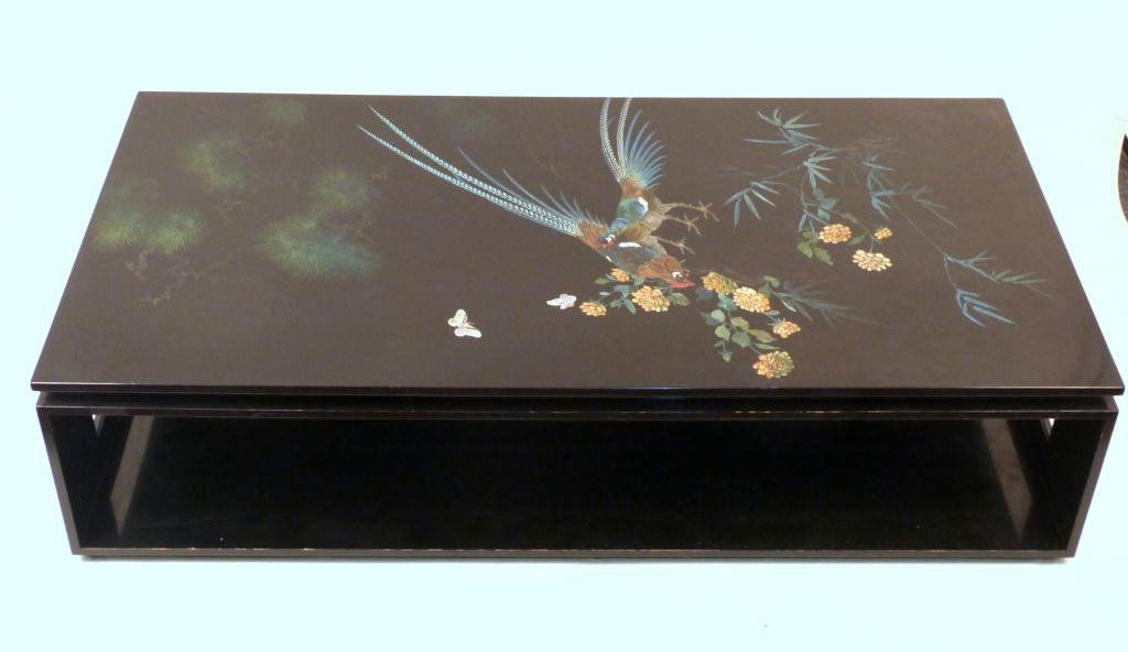 Chinese Black Coromandel Lacquer Inlay Low Table2 days LeftAn Asian Black Lacquer Low Table with Mother-of-Pearl Inlay and Red-Lacquered Base2 days LeftMid Century Modern Black Coffee Table Asian Inspired Design 40x406 days LeftA Vintage/Antique Japanese Lacquer Tray3 days LeftMid-Century Modern Brass Coffee TableMar 05, 2026Rosewood tea table inlaid with mother-of-pearl floral and bird motifsFeb 21, 2026Rosewood tea tray with brass corners and inlaid mother-of-pearl depicting magpies on plum blossomsFeb 21, 2026Antique Vietnam Mother of Pearl Inlay Rosewood Tea TrayFeb 28, 2026Copper Cloisonne Jewelry Box Casket Peacock FloralFeb 22, 2026Vintage Russian "The Golden Cockerel" Lacquered Paper Mache BoxFeb 28, 2026A Japanese Lacquer Box with Gilt Floral Decoration, Meiji Period (Late 19th Century)2 days LeftA Large Chinese Lacquer Box with Hardstone Inlay6 days LeftChinese Lacquered Coffee TableFeb 21, 2026Rosewood tea tray inlaid with colorful seashells depicting magpies perching on plum blossomsFeb 21, 2026Rare antique collection, acquired in the countryside, pure hand-painted lacquerware table with12 hrs LeftAn exquisite zitanwood lacquered, gold-embedded, flower-and-bird pattern table screenMar 04, 2026