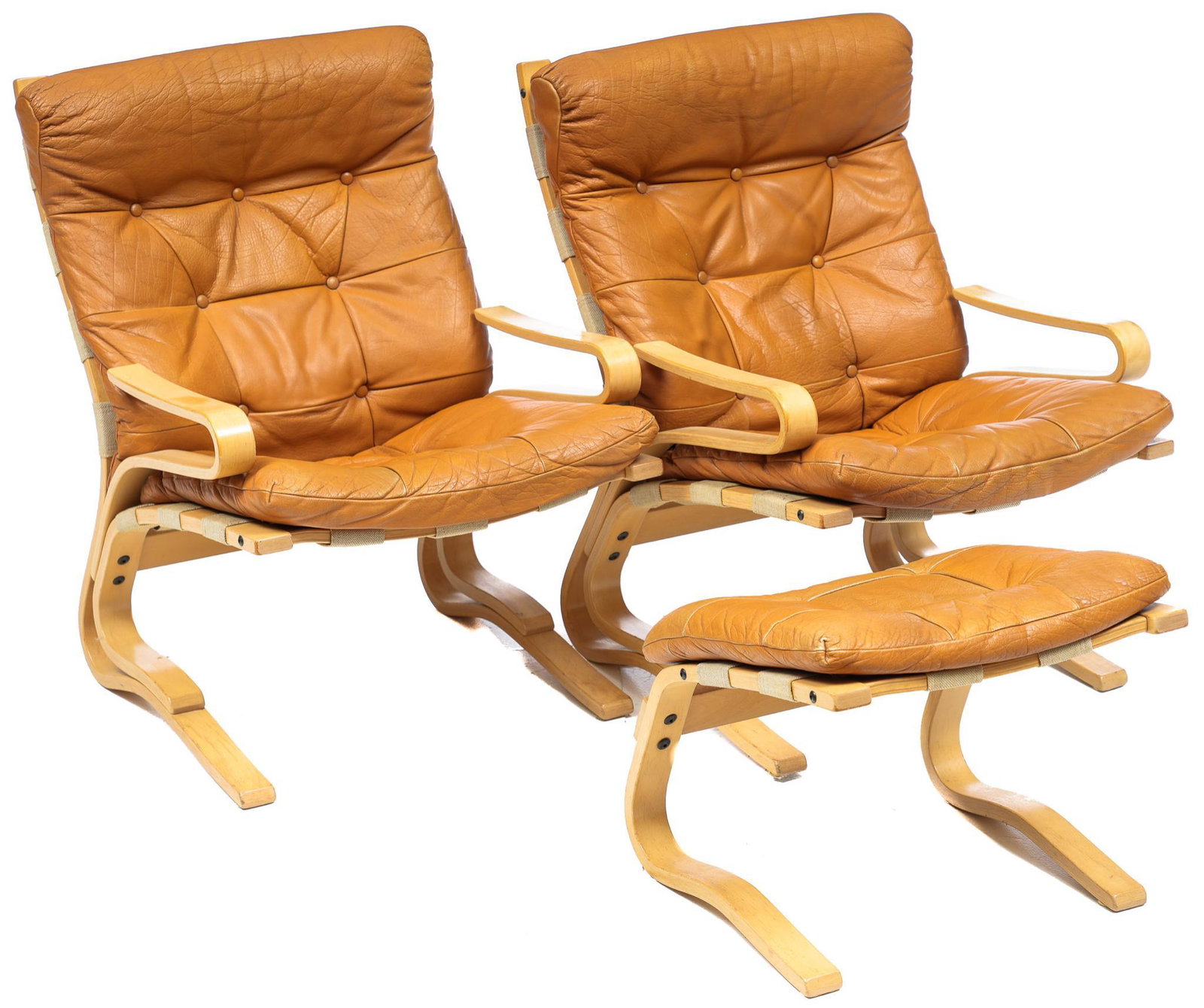 Angel Pazmino Set of 2 Mid-Century Modern Leather Sling Chairs with OttomansMynt Auctions4.5(862)$1002 days Left