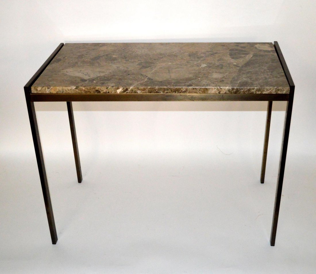 SoldPr Paul McCobb for Calvin Marble Top Side TablesPaul McCobb for Calvin Irwin Collection mahogany and brass side table, Mid Century Modern. One shelf and one drawer below table top, all supported by a brass frame. Metal identification tag reading CaSee Sold Price